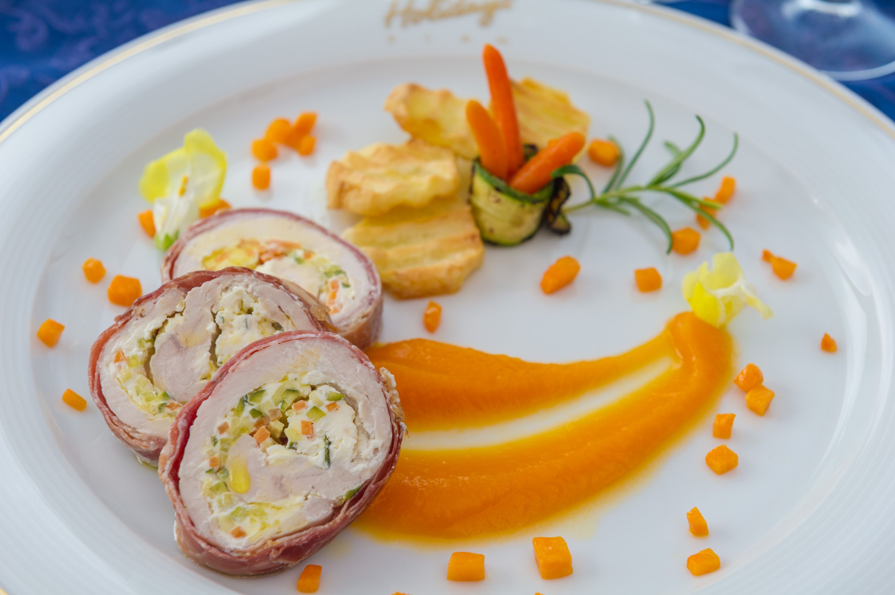Unser hoteleigenes Restaurant bietet eine große Auswahl an Gerichten aus einer sorgfältig zusammengestellten und abwechslungsreichen Speisekarte. Mittags und abends erwartet Sie ein reichhaltiges Buffet mit Gemüse und Vorspeisen, serviert von unseren Mitarbeitern. Unsere Küche bietet außerdem köstliche hausgemachte Desserts. Die einladende Atmosphäre wird durch einen Begrüßungscocktail und ein elegantes, wöchentliches Galadinner abgerundet.